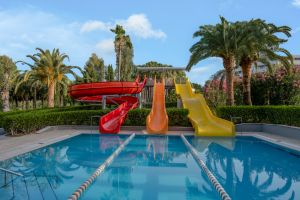 Основен ресторант, 2 а-ла-карт ресторанта (италиански, средиземноморски – 1 безплатно посещение по време на престоя, с предварителна резервация), 2 снек ресторанта, сладкарница, 3 бара, витамин бар (срещу заплащане), дискотека, 1 открит басейн (отопляем), 1 закрит басейн с джакузи (отопляем), 3 водни пързалки, СПА център, магазини, паркинг.