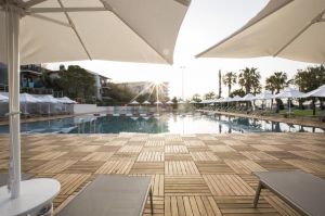 Собствен, пясък, пирс. Бар на плажа. Чадъри, шезлонги, матраци – безплатно. Плажни хавлии: веднъж на ден – безплатно. На басейна: чадъри, шезлонги, матраци – безплатно.