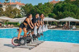 Безплатни услуги: Сауна, турска баня, фитнес, тенис корта, тенис на маса, дартс, боча, плажен волейбол, баскетбол, аеробика, пилатес, йога, зумба, водна гимнастика, водно поло, тематични партита, жива музика, анимация, Wi-Fi (на цялата територия)