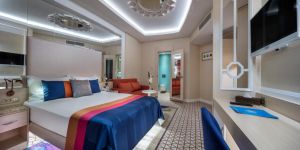 Хотелът разполага с общо 872 стаи, от които 580 стандартни стаи и 292 различни типове фамилни стаи. Всички стаи са оборудвани с: климатик, сателитна телевизия, телефон, баня с душ или вана, сешоар, минибар (със зареждане всеки ден), сейф (безплатeн), балкон. Почистване на стаите – всеки ден, смяна на бельото и кърпите – 3 пъти в седмицата.