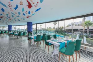 Основен ресторант, а-ла-карт ресторант(италиански, интернационален)- съгласно концепцията на хотела, 3 бара, витамин бар, диско бар, външен и вътрешен басейн, аквапарк, водни спортове, СПА център, сауна, хамам, фитнес, билярд, кино салон, тенис на маса, баскетбол, анимация, магазини, WIFI- съгласно концепцията на хотела.