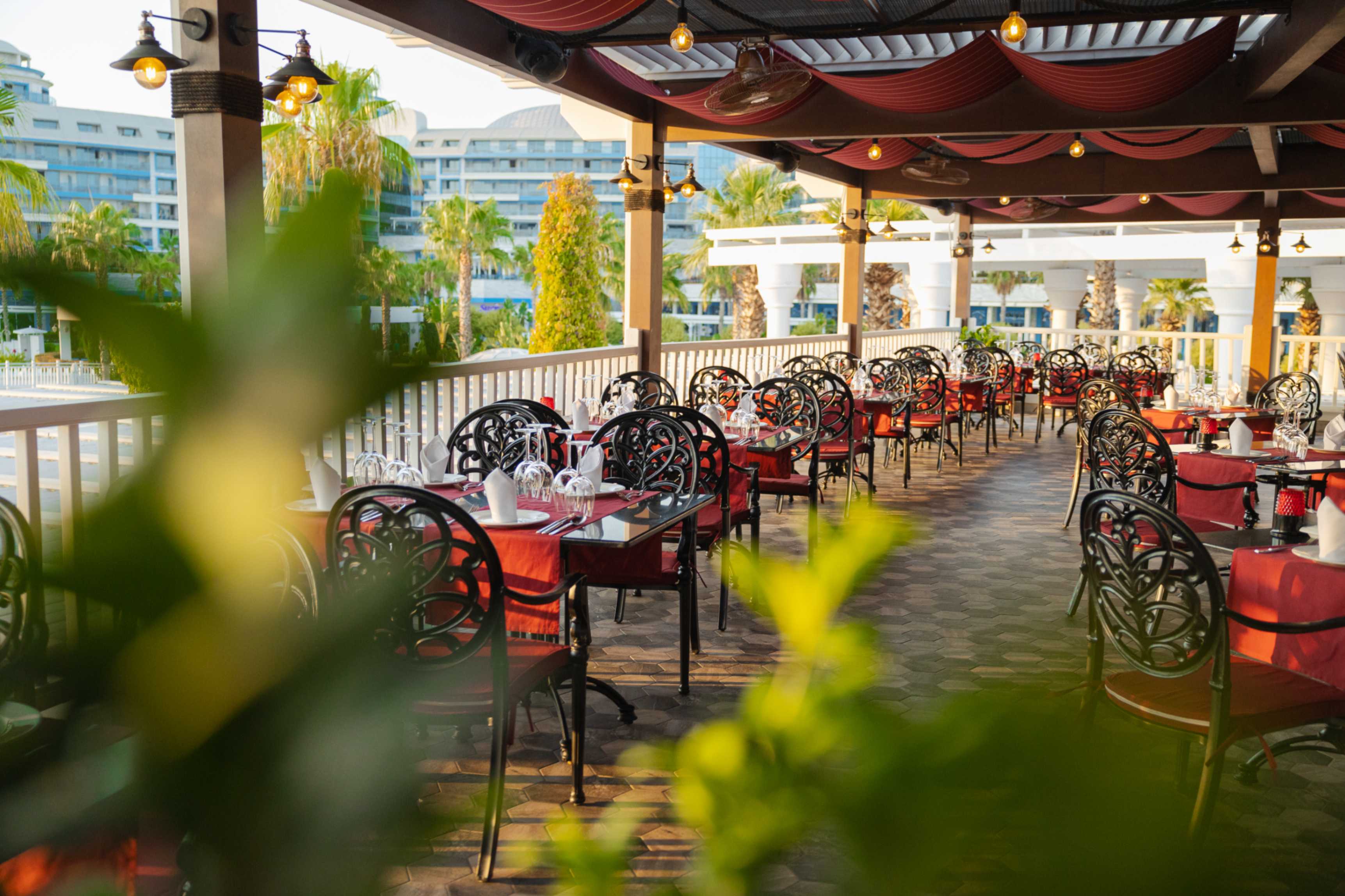 Основен ресторант, 4 а-ла-карт ресторанта с предварителна резервация съгласно концепцията на хотела, 13 бара, 7 басейни, дискотека, паркинг.