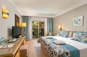 Стаи Main Building: 193 Standard rooms (изглед гладина/море, балкон - 26 м2), 22 Junior Suites (изглед градина/море, 1 спалня, 1 хол, 1 баня с вана, балкон - 45 м2), 4 Family Rooms (изглед градина, 2 спални, 1 баня с вана, балкон – 45 м2), 4 Handicapped Rooms (изглед градина/море, балкон – 26 м2).