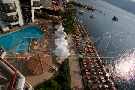 На 95 км от летището в гр. Даламан, 3 км от историческия център на Мармарис, на брега на морето със собствен пясъчен плаж, намира се близо до аквапарк “ Atlantis “,на 4 км от Ичмелер, построен 2000 г.