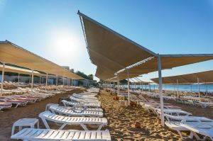 Собствен, на 500 м. от хотела, пясъчен. Безплатен шатъл до плажа (в определен часови диапазон). Чадъри, шезлонги и плажни кърпи на плажа и при басейна – безплатно.