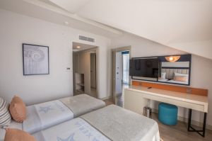 Хотелът разполага с общо 375 стаи, от които 276 Standard Room (31 м2), 74 Family Room (2 спални, 1 баня - 38 м2), 8 Swim-Up Room (директен достъп до басейна, 31 м2), 12 Junior Suite Room (38 м2), 4 Deluxe Room Sea View with Jacuzzi (31 м2), 1 Family Deluxe Room Sea View with Jacuzzi (2 спални, 1 баня - 38 м2). Всички стаи са оборудвани с климатик, телевизор, телефон, баня с душ, сешоар, минибар (зареждане - всеки ден), сет за кафе/чай, сейф (безплатен), Wi-Fi, балкон. Почистване на стаите, смяна на кърпите и зареждане на минибар – всеки ден, смяна на спалното бельо – 2 пъти в седмицата.