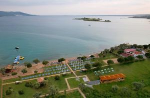 Собствен, пясъчен с дължина 150 м., притежаващ сертификат "Син флаг". Чадъри, шезлонги, матраци и плажни кърпи на плажа и при басейна - безплатно.