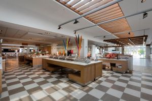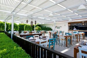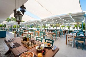 Хотелът разполага с основен ресторант, тераса-грил ресторант и ресторант на плажа. В 2-та бара се предлагат освежаващи напитки. All Inclusive – закуска, обяд и вечеря на блок маса, междинни хранения, местни алкохолни и безалкохолни напитки – без лимит.