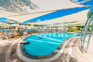Този хотел на брега на Средиземно море разполага с дълга частна ивица пясъчен плаж. Съоръженията на място се допълват от 2 открити басейна, аквапарк с 3 басейна и 11 водни пързалки. Чадъри, шезлонги и матраци - безплатно. Хавлии се предлагат срещу депозит.