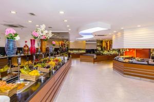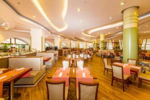 Основен ресторант на блок маса, ресторант - градина, бар на басейна, 8 а` ла карт ресторанта: италиански, турски, стек, далекоизточен, рибен, кебап, средиземноморски, мексикански, гръцки. Освежаващи напитки и закуски се поднасят в бар на басейна, лоби бар, бар в градината, диско бар, рецепция с голямо лоби.