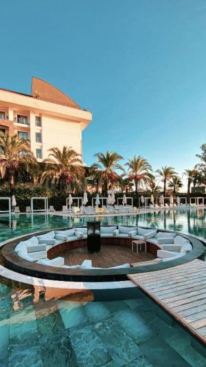 Основен ресторант, 5 а-ла-карт ресторанта (рибен, турски, италиански, барбекю, стек – 1 безплатно посещение при минимум 7 нощувки), сладкарница, 7 бара, открит и закрит (отопляем) басейн, закрит (отопляем) басейн с джакузи, аквапарк, амфитеатър, СПА център, дискотека, магазини, конферентна зала.