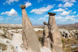 Днес ще посетите долината Деврент, известна още като Долината на въображението. Известна със своя сюрреалистичен и неземен пейзаж тази очарователна долина предлага уникално изживяване като никоя друга. От причудливите образувания, наподобяващи животни до поразителните розови скали, долината Деврент разпалва въображението и ви пренася в царството на чудесата. Друга забележителност е природния феномен Трите красавици – три приказни комина с шапки, превърнати в символ на Кападокия. Ще видите и Долината на гълъбите, кръстена на многобройните домове за гълъби, изсечени в меката туфа от древни времена.
