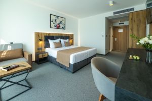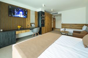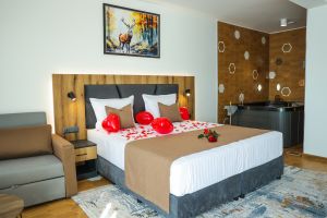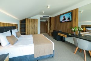 Удобствата в тях са разтегателно кресло, Smart TV, WI-FI интернет, минибар, козметика за баня, тераса с терасна мебел, безплатно ползване на бебешка кошара.