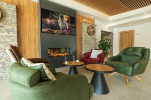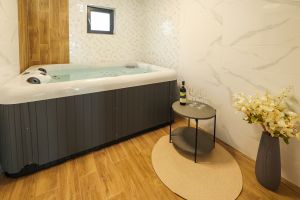 - Вила тип 4 - Разполага с просторна всекидневна с камина, трапезария, напълно оборудвана кухня, четири спални със самостоятелни санитарни възли, 1 стая с едно единично легло и релакс зона с джакузи, сауна, дартс и билярдна маса. В две от спалните има разтегателни канапета.