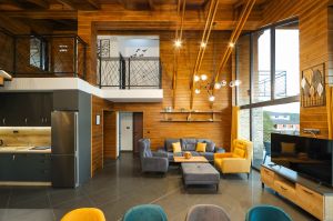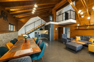 - Вила тип 1 - Разполага с просторна всекидневна с камина, трапезария, напълно оборудвана кухня, три спални със самостоятелни санитарни възли и вътрешно джакузи. В две от спалните има разтегателни канапета;