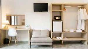 Хотелът предлага стаи с климатик, гардероб, сейф, телевизор с плосък екран, балкон и самостоятелна баня с биде. Стаите в Calma Beach Hotel са снабдени със спално бельо и хавлии.