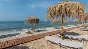 Разположен в Марония, само на 44 км от известното казино „Тракия“, величественият хотел King Maron Wellness Beach привлича гостите с райско кътче на спокойствието. Разполага с фитнес център, безплатен частен паркинг и спокойна градина. Елегантно проектиран, хотелът предлага климатизирани стаи с основни удобства като бюро, кана, хладилник, сейф, телевизор с плосък екран, тераса и самостоятелна баня с душ. Някои стаи предлагат гледка към морето, а всяка от тях е с балкон с гледка към живописната околност. Внимателно обмислените детайли включват спално бельо и кърпи. Поглезете се с континентална, пълна английска/ирландска или италианска закуска в приветливата трапезария на хотела. Ресторантът на хотела изкушава вкусовите рецептори с гръцка, средиземноморска и международна кухня,с възможност за вегетариански, вегански и безглутенови опции.