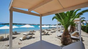 Nautica Bay се намира в залива Порто Хелио, на 185 километра югозападно от Атина. На един хвърлей камък от селото, хотелът е идеална отправна точка за близките аргосаронически острови Хидра и Спецес. Заливът Порто Хелио, едно от най-красивите естествени пристанища, се простира пред хотела. Селският път отделя хотела от организирания му плаж. Напълно реновиран, Nautica Bay разполага с тенис корт, мини голф, басейн, детска площадка, организиран плаж с плажен бар, ресторант на покрива, банкетна зала, магазин за хранителни стоки, интернет бюро, нощен клуб, зона за срещи за 50 души, бар край басейна, пинг-понг, билярд, настолни игри.
