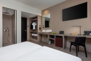 Всички стаи в Kubic Athens са оборудвани с прозорци от пода до тавана и са декорирани в светлозелени и сиви тонове. Те са оборудвани с 43-инчов LG Smart TV, USB портове, VoIP телефон и шумоизолирани прозорци. Таблетът в стаята позволява на гостите да контролират температурата и осветлението в стаята. Модерните бани са с душ тип „тропически дъжд“, безплатни маркови тоалетни принадлежности и сешоар.