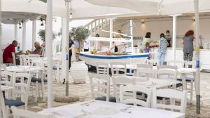 Напълно оборудваният плажен бар създава морска атмосфера и предлага на гостите леки закуски и напитки на фона на музика.