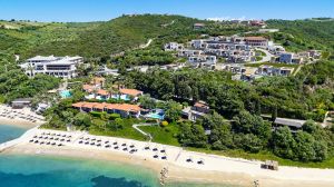 Впуснете се в свят на незабравими преживявания, надхвърлящи очакванията, и открийте лукса в най-добрия му вид в 5-звездния хотел Eagles Palace в Халкидики, Гърция, дом на девствени пейзажи, история и кулинарни изкушения. Eagles Palace се намира в живописното село Урануполис. Това е величествена и девствена местност с невероятни кристално чисти сини води и дълги пясъчни плажове, които предлагат перфектните условия за спокойна почивка на слънце. Eagles Palace е семеен 5-звезден плажен комплекс до монашеската държава Атон. Сгушен сред буйни средиземноморски градини, съчетаващ безупречно обслужване и спираща дъха обстановка, хотелът разполага със 157 стаи, апартаменти и бунгала, проектирани за елегантен живот с 24-часово обслужване по стаите, зашеметяваща гледка към морето, частен пясъчен плаж, отопляеми открити и отопляеми закрити басейни, награждаван спа център, детски клуб, управляван от опитни професионалисти, центрове за водни спортове и гмуркане, четири ресторанта и три бара, както и яхт клуб, предлагащ частни круизи и ексклузивно ползване на прекрасен плаж на необитаемия остров Дрения, оборудван с чадъри и шезлонги.