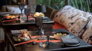 Всеки ден се предлага сертифицирана гръцка закуска, включваща прясно изпечени местни пайове, сирене и пресни плодове. Възможностите за хранене включват международна гурме кухня в ресторант Kamares и рибни специалитети, приготвени на място в ресторант Almyra. Кафене, коктейл бар и бар на плажа сервират напитки и коктейли през целия ден.