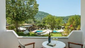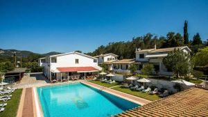 Хотелът, разположен в северозападната част на Корфу и в непосредствена близост до известния морски курорт Палиокастрица, е заобиколен от маслинови горички и буйни зелени хълмове.