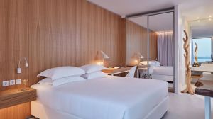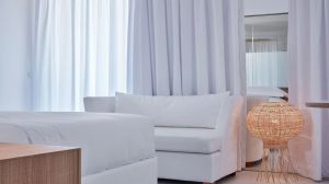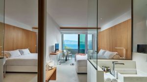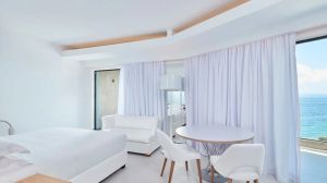 Всички помещения за настаняване в хотела разполагат с плоскоекранен телевизор със сателитни канали и сейф. Atlantica Nissaki Beach - Adults Only предлага помещения за настаняване с изглед към басейна, а стаите разполагат с балкон. Всяка стая включва собствена баня с халати и чехли.