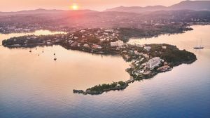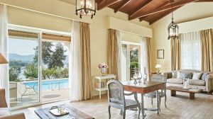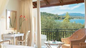 Разположен в село Комено на остров Корфу, този хотелски комплекс на първа линия до плажа предлага панорамна гледка към Йонийско море и град Корфу. Grecotel Eva Palace разполага с частен плаж и впечатляващ басейн с бар.