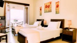 Всяка светла и просторна стая е климатизирана и предлага самостоятелен душ, мини хладилник и телевизор. Всички имат обзаведени балкони с изглед към морето или околния хълм.