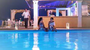 Ресторантът сервира разнообразна закуска и вечеря на шведска маса, с акцент върху гръцката кухня. Освежаващи напитки и сладолед могат да се насладят в бара край басейна или в приветливото лоби на хотела.