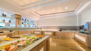 Закуската се сервира на шведска маса, континентална или американска.