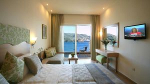 Стаите в Akrotiri Beach Resort Hotel - Adult Friendly разполагат със самостоятелен балкон с изглед към Йонийско море. Те са климатизирани, елегантно декорирани в меки цветове и с дървени подове. Всички включват мини хладилник и телевизор с плосък екран със сателитни канали. В някои от тях ще намерите отделна всекидневна с диван. Ресторантът на хотела предлага гледка към морето и сервира закуска и вечеря. Гостите могат да се насладят на обяд в снек-бара, който е до басейна тип infinity pool. Барът на слънчевата тераса предлага панорамна гледка към живописното пристанище Алипа. През седмицата се организират представления с музика на живо и танци.