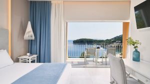 San Antonio Corfu Resort (който от 2017 е само за възрастни) се намира на 20 метра от плажа Kalami, на върха на хълм сред маслинова гора. Разполага с 2 басейна и предоставя стаи и суитове с изглед към Йонийско море. Навсякъде е осигурен безплатен Wi-Fi.
