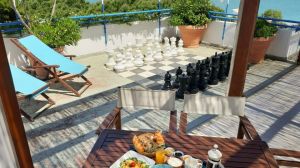 Вратите на салона са отворени към красивите градини на хотела през лятото. Гостите могат да се възхищават на природата наоколо от градината на покрива.