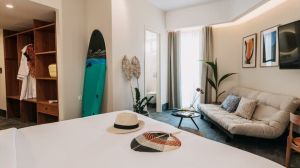 Добре дошли в DAVE by the Beach Loutraki, където животът е плаж, а купонът никога не спира! Разположен само на час път с кола от Атина, нашият хотел не е просто място за престой; той е вашата врата към най-висшето приключение. С 39 оживени стаи и отлично местоположение, ще се озовете само на 100 метра от целунатия от слънцето бряг. Всяка от нашите удобни, просторни стаи се отваря към балкон, приканващ към освежаващия морски бриз. Очаквайте гостоприемството на Brown, включващо първокласно спално бельо, луксозни удобства и матраци по поръчка, пригодени за възвишена дрямка.