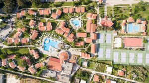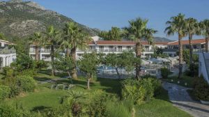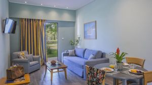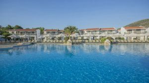 Архитектурата на хотела, пропита с традиционен гръцки стил, се простира върху обширна територия и се състои от 4-етажна основна сграда и очарователен набор от 2-етажни бунгала, създавайки комплекс, подобен на село, съсредоточен около басейни и основни удобства. С общо 527 стаи и апартаменти, с капацитет до 1200 гости, това е приветливо място за всички.