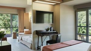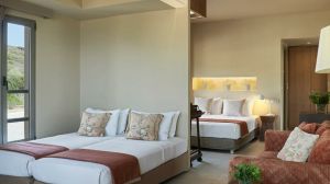 Стаите в хотел Aegeon Beach разполагат с ръчно изработени мебели и мраморни бани, минибар, телевизор с чуждестранни и детски канали и безплатен Wi-Fi.