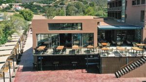 Преобладаващите елементи в интериора са мрамор, дърво и мед, създаващи атмосфера на елегантност и топлина.