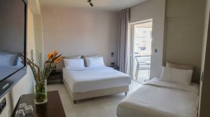 Хотелът предлага климатизирани стаи с бюро, електрическа кана, хладилник, сейф, телевизор с плосък екран, тераса и самостоятелна баня с душ. Някои стаи са с изглед към морето, докато всички стаи са с балкон и гардероб.