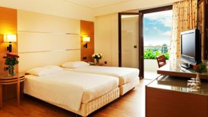 Просторните и модерно обзаведени стаи предлагат самостоятелна баня и голяма веранда с неповторима гледка към залива Евойкос, красивата градина и басейните на хотела. Удобствата включват също сейф и климатик.
