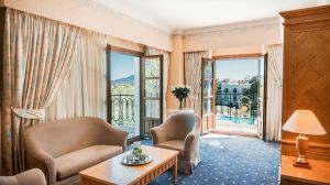 Изживейте олицетворението на лукса в Mitsis Galini, 5-звезден луксозен хотел, предлагащ както all inclusive, така и полупансион в тихия рай на Камена Вурла. Гордо разположен на брега на морето, комплексът предлага спокойно убежище с басейни с термална вода, термален спа център и буйни градини с живописни пешеходни пътеки, създаващи перфектната атмосфера за релаксация. На цялата територия е осигурен безплатен WiFi.