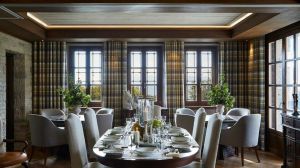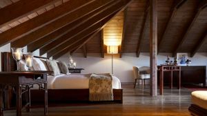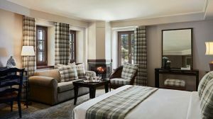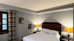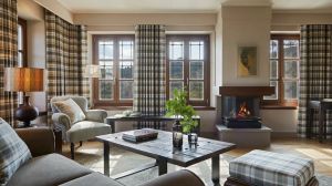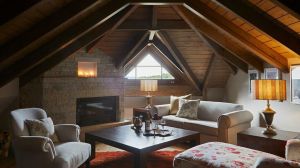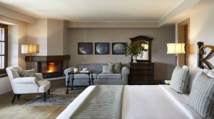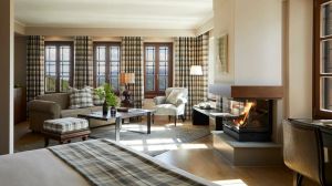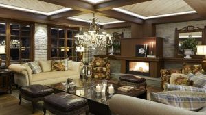Ръчно изработени килими и индивидуални камини във всяка стая допълват атмосферата, докато голямото фоайе плавно преминава в просторна всекидневна, украсена с луксозни шезлонги и камина, предлагаща изискана обстановка за релаксация.