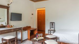 С 23 стаи и апартаменти, излъчващи традиционен чар, украсени с дървени подове, красиво резбовани тавани, отразяващи шарките на Хиониадитика, и много от които с примамливи камини, хотелът предлага уютни убежища за релаксация. Кабелна телевизия е налична във всички стаи, канейки гостите да се отпуснат в комфорт.