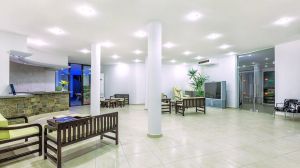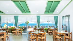 Заобиколен от зеленина и борови дървета от едната страна и бял пясък и синьо море от другата, този хотел е идеално място за семейства с деца.