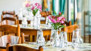 Гостите могат да започнат деня си със закуска на шведска маса. В ресторант-таверната на Dolphin се сервират гръцки и средиземноморски ястия за обяд и вечеря. В бара на плажа и бара край басейна на хотела гостите могат да прекарат спокойни моменти с освежаващ коктейл под звуците на меката музика.