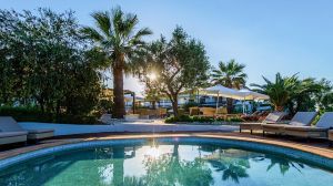 Разположен сред вечнозелени градини, този 4-звезден хотел предлага оазис далеч от дома, близо до плажа и зашеметяващите прохладни води на Средиземно море. Топло приветливият хотел Flegra Palace, крайъгълният камък на Flegra Collection, предлага лукс и стил, същевременно в хармония с природата около него. Намира се близо до село Пефкохори, едно от най-космополитните места в Касандра, първият полуостров на Халкидики.