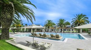 Сгушен в един от най-спокойните райони на Касандра, заобиколен от буйна борова гора, хотел Ирис е построен върху площ от 16 акра. Неговите 89 стаи и 4 луксозни апартамента са разположени амфитеатрално, с изглед към басейните и големите градини, които са павирани с трева, под сянката на многогодишни маслинови дървета, заедно с разнообразие от сезонни растения и големи палми. Гостите се радват на безплатен паркинг и закуска, а хотелът разполага с непринуден ресторант на шведска маса и бар на открито. Освен това, откритият басейн, специалният детски басейн и магазинът за закуски допълват спокойната атмосфера. Освен това, хотелът се гордее с буйни градини и спортни игрища, осигуряващи пълноценен и приятен престой за всички посетители.