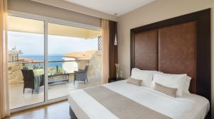 Сгушен в амфитеатър на хълмовете, в най-красивата част на имота, на 60 метра от морския бряг и с уникална гледка към безкрайното синьо на Торонейския залив и Егейско море. Основан през 1997 г. с 22 стаи, хотел Blue Bay отбелязва своето начало едновременно с учредяването на Blue Bay S.A. През 2008 г. последва значително разширение, обогатяващо хотела с нови удобства и луксозни услуги. В момента хотелът разполага с 69 стаи и апартаменти, всеки от които предлага спираща дъха гледка. Нашата визия, водена от семейство Цапанидис, беше да създадем райско кътче от дискретен лукс в уютна атмосфера, сгушено в уникална природна среда. Апартаментите са построени с естествени камъни, точно като тези, открити в древното село Афитос, което е близо до хотела.