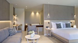 Климатизираните стаи в хотела разполагат с бюро, кафемашина, хладилник, минибар, сейф, телевизор с плосък екран и собствена баня с душ. Всяка стая разполага с електрическа кана, а някои стаи са с балкон, а други предлагат изглед към морето. Стаите за гости разполагат с гардероб.